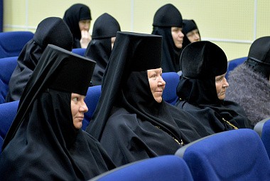 монахиня Никона (Афанасьева), насельница Свято-Тихоновского Преображенского женского монастыря, зачитала доклад «Роль монашества в современном мире и современные технологии в жизни монашествующих».