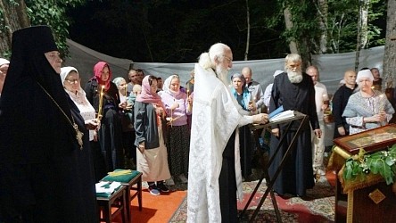 Затем батюшка совершил панихиду о убиенных игумении Рафаиле с сестрами и о всех убиенных за веру. Прочли также записки о упокоении, поданные богомольцами. Отец Евгений освятил поминальную кутью, сваренную накануне в монастыре «Всецарица».