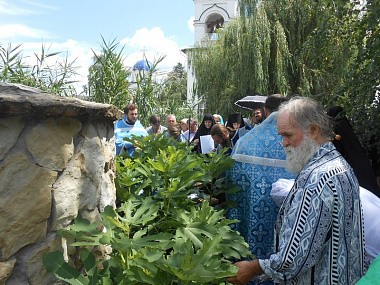 По окончании богослужения священнослужители обители, настоятельница монастыря игумения Неонилла (Кузьмина) с сестрами, многочисленные прихожане и паломники торжественно отправились к источнику на монастырское подворье.