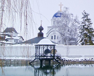 Храм в честь Преподобного Саввы Освященного – первый храм монастырского подворья, перестроен из кузницы колхозной сад-бригады, которая располагалась ранее на этом месте.