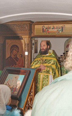Затем был состоялся крестный ход вокруг храма с пением тропаря празднуемому святому и кроплением молящихся святой водой.