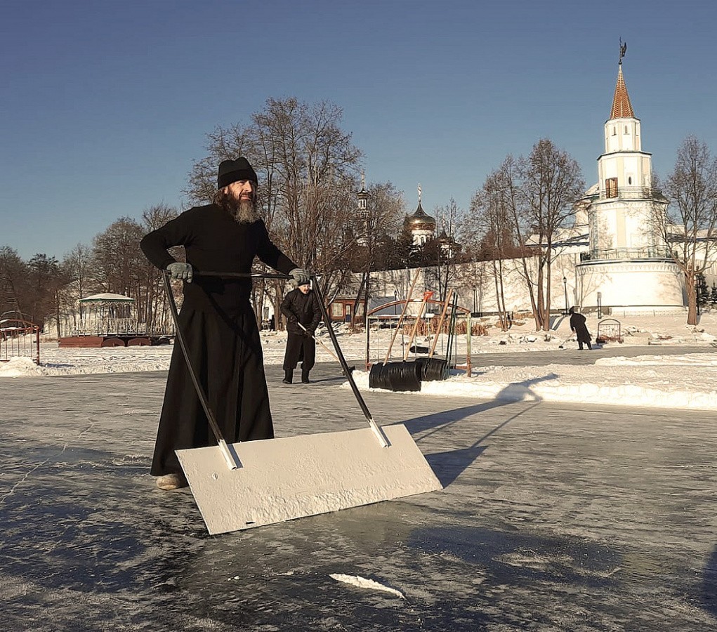 Братия Раифского Богородицкого мужского монастыря очистили от снега лед на Раифском озере. Здесь решено организовать для всех желающих каток под открытым небом. Открытие катка – 12 декабря.