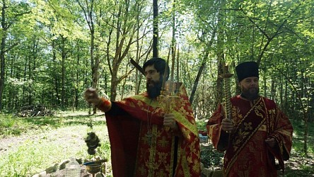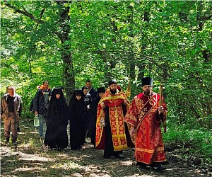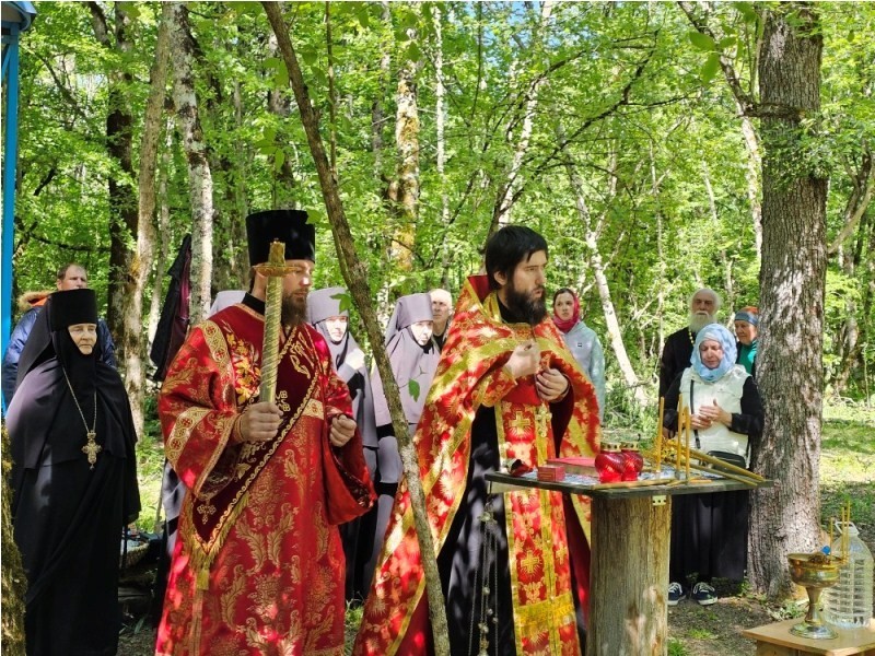 Во вторник Светлой седмицы клирик монастыря иерей Владимир Зыков совершил молебен по Пасхальному чину, помогал ему иеродиакон Николай (Тищенко). Молились у креста, установленного на месте разрушенного Покровского храма. На молебне молились игумения Неонилла с сестрами, трудники монастыря, местный священник протоиерей Евгений Султанов с прихожанами и жителями рядом расположенных станиц. Затем отец Владимир произнес краткую проповедь, потом окропил святой водой места будущего строительства, а также могилки убиенных и захороненных здесь монахинь. Крестным ходом прошли к источнику, который уже больше сотни лет бьет несколько ниже скита на горе.