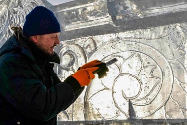 Около панно с образом Богородицы в скором времени появится надпись «С Рождеством Христовым!» Чуть дальше будут возведены две ледяные часовни с большими иконописными изображениями «Рождество Христово» и «Крещение Господне».