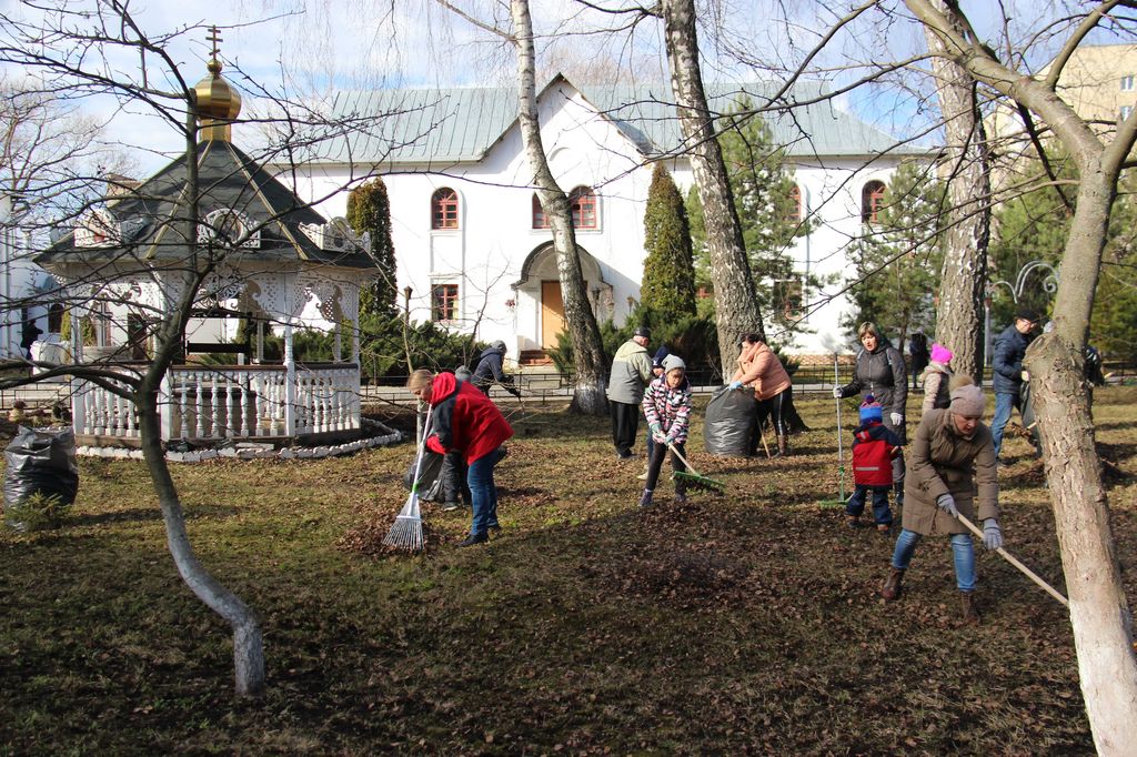 14 марта 2020 года, в субботу 2-й седмицы Великого поста, после Божественной литургии, на территории Свято-Успенского мужского монастыря г. Новомосковска прошел субботник, который был организован братией обители, учащимися воскресной школы, участниками Кадетского движения и неравнодушными прихожанами.