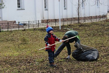 Нина Забегалова, педагог Воскресной школы, считает: «То, что на субботнике родители трудятся во славу Божию вместе с детьми, считаю самым эффективным средством воспитания, так как личный пример напрямую влияет на формирование личности ребенка».