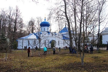 На уборку территории обители собралось порядка 70 человек. За короткое время была проделана большая работа по уборке территории обители и монастырского парка.