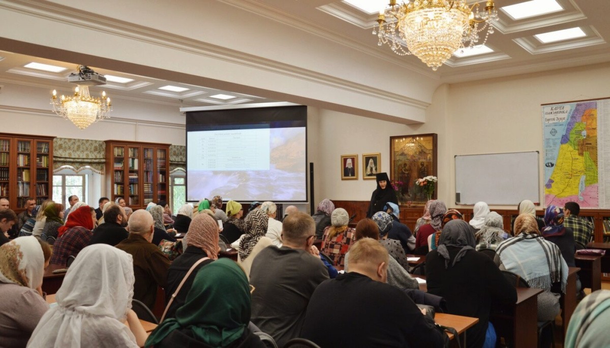 Перед началом нового учебного года состоялся традиционный молебен, затем к слушателям курсов с приветственным словом обратилась настоятельница обители игумения Мария (Яковлева).