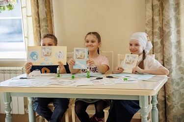 После экскурсии представители СМИ посетили мастер-класс для детей по изготовлению Благовещенской открытки с изображением летящих птиц.