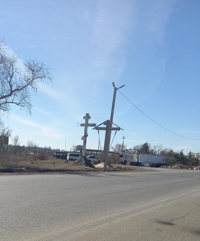 Недалеко от одного из населенных пунктов установили новый поклонный крест. Старый крест, простоявший не одно десятилетие, специально не стали демонтировать как напоминание о человеческой жестокости (святыня была расстреляна из стрелкового оружия).