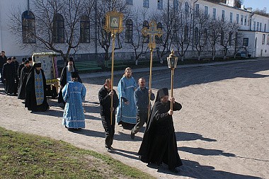 После воздушного крестного хода чтимый образ Пресвятой Богородицы был возвращен на место своего постоянного пребывания – в Успенский собор Дивногорского мужского монастыря.