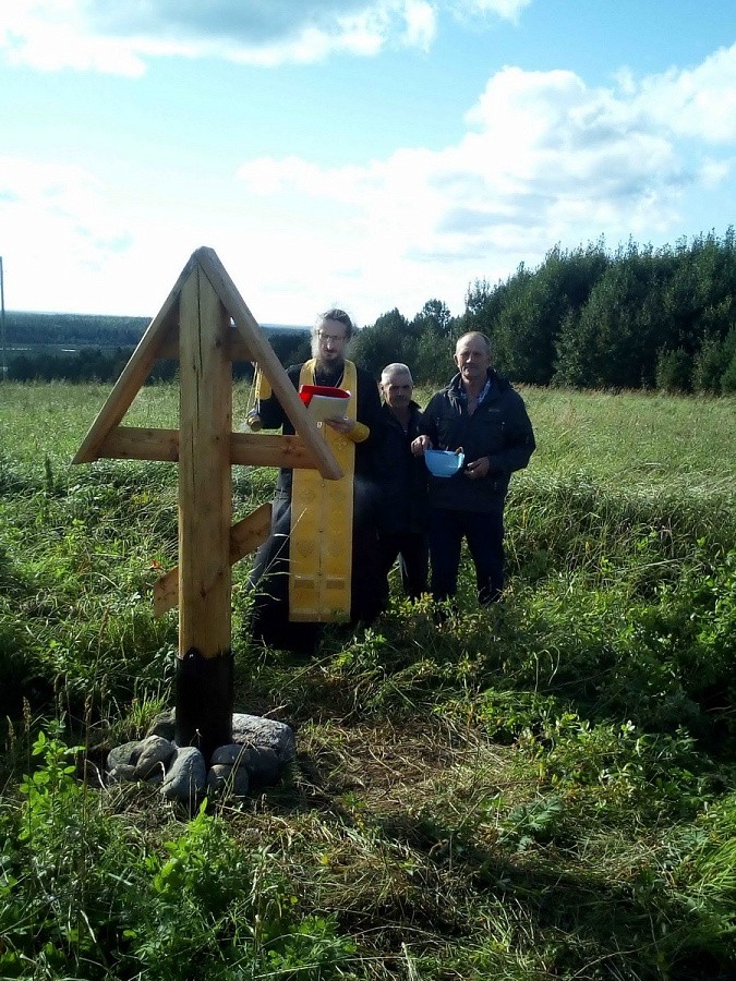 После Крещения священник освятил поклонный крест в деревне Высокое. Двухметровый крест изготовил и установил житель Пиринеми Владимир Ушаков в память о часовне, которая раньше стояла в этой деревне.