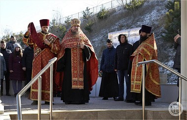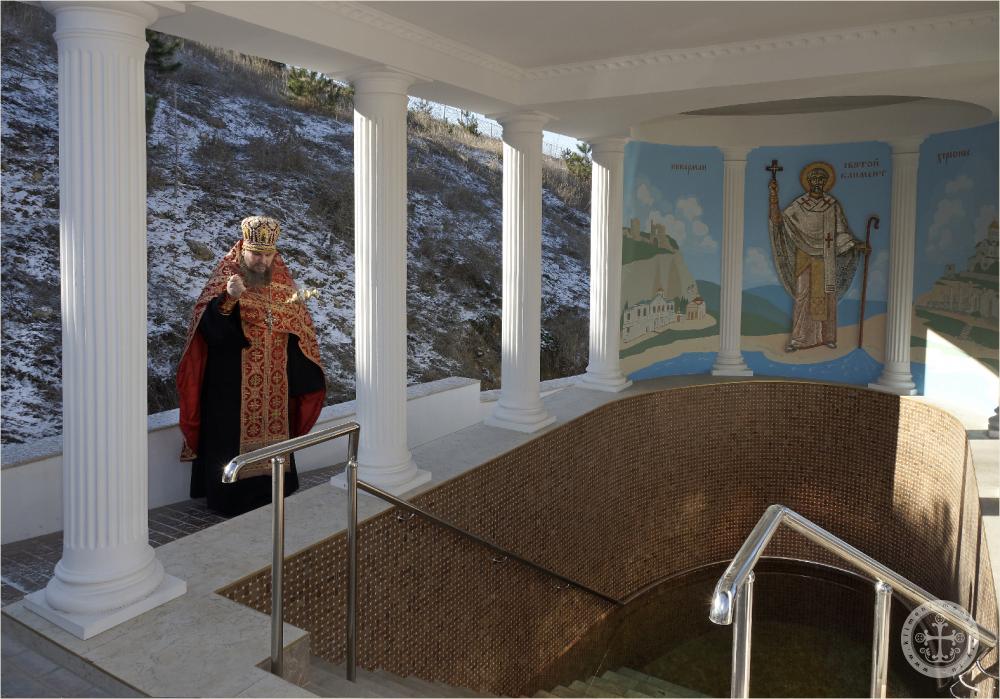 По окончании молебна на территории комплекса состоялось освящение источника с купелью в честь мужа апостольского священномученика Климента Римского. Чин освящения совершил благочинный Севастопольского округа протоиерей Сергий Халюта. Купель воздвигнута на месте обретенного в наши дни древнейшего источника, входившего в систему родников, питавших Херсонес и окрестности с античных времен. Климент Римский, проповедовавший в ссылке близ Херсонеса в I веке по Р.Х. и принявший здесь мученическую кончину, под своим омофором промыслительно объединил мучеников первохристианских и новомучеников и исповедников последних времен.
