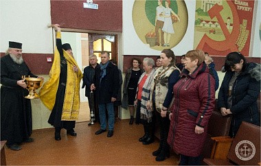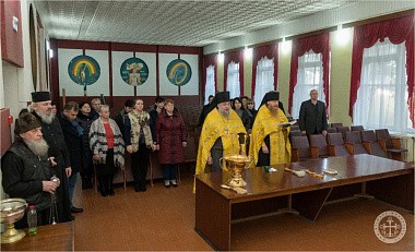 По окончании молебна отец Авель обратился со словом к присутствовавшим сотрудникам, после чего окропил всех святой водой.