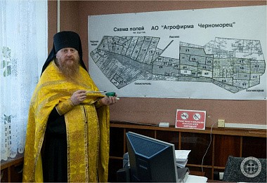 На молебне в административном здании присутствовало руководство АО «Агрофирма "Черноморец"» в лице директора К.В. Гацоева, главного агронома Р.В. Сибирцева и других лиц руководящего звена предприятия.