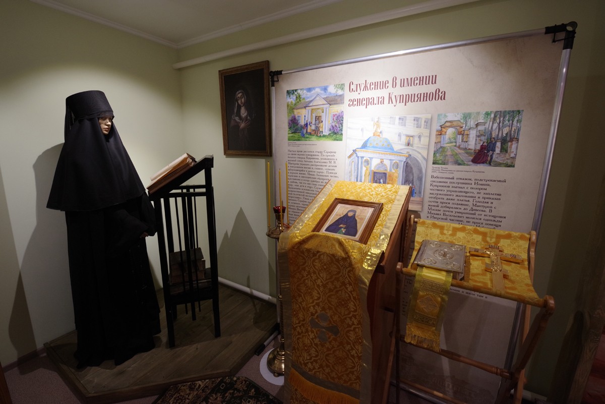 Отвечая на вопросы журналистов, игумения Сергия рассказала о том, с каким усердием, любовью и трепетом сестры Дивеевской обители составляли экспозицию, посвященную преподобной Елене и ее брату.