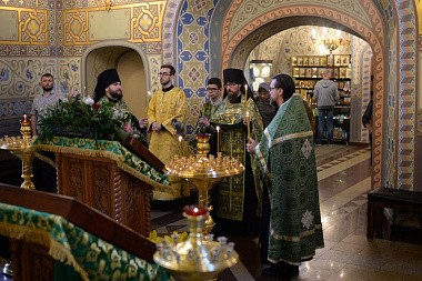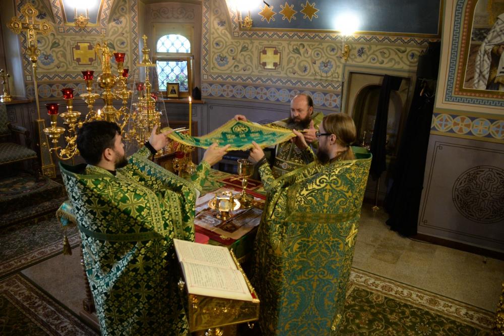 В храме Успения Божией Матери на Княжьем дворе настоятель Спасо-Евфимиева монастыря иеромонах Арсений (Смирнов) возглавил всенощное бдение и Божественную литургию в сослужении братии в священном сане и клириков обители.