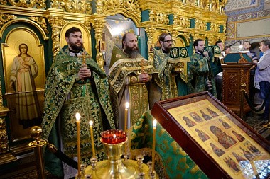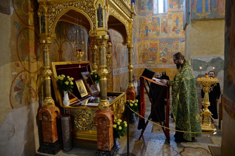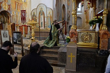 В завершение настоятель и братия монастыря также почтили память преподобного Евфимия, отслужив молебен с акафистом у раки с его честными мощами в Спасо-Преображенском соборе.