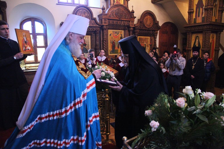 Награды настоятельницу обители удостоил Святейший Патриарх Московский и всея Руси Кирилл по представлению митрополита Ярославского и Ростовского Пантелеимона.