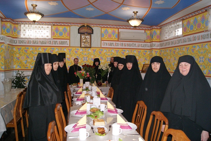 За трапезой матушка Неонилла поделилась воспоминаниями о своем постриге 15 лет назад, ставшим в ее жизни самым значимым событием после того, как она закончила свою карьеру в нефтедобывающей промышленности.