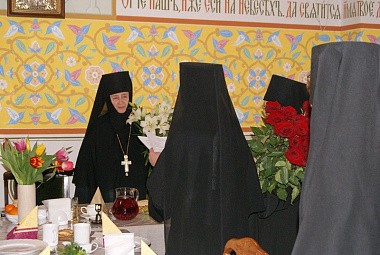 В завершение праздничной трапезы насельницы исполнили «Благоденствие» игумении Неонилле.