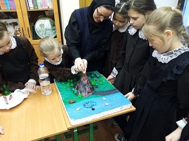В конце февраля в «Доброй школе на Сольбе» при Николо-Сольбинском женском монастыре прошла неделя науки. Во всех классах учителя провели серию тематических уроков. Ученики нарисовали плакаты и повесили их в холле школы. А девочки из 4-го класса поделились своими впечатлениями от опытов, которые они проводили.