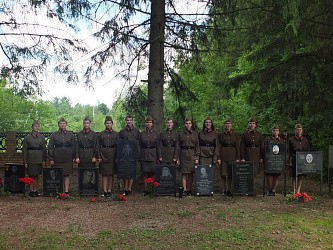 Накануне, 8 июля, воспитанницы «Отрады» побывали на Ильинских рубежах, чтобы еще раз вспомнить этот рубеж обороны на Варшавском шоссе – часть Можайской линии обороны Москвы. На следующий день им предстояло выдвинуться к Юхнову, по той дороге, по которой когда-то двигался передовой отряд Подольских курсантов, остатки которого тогда вернулись назад к Ильинскому – с ожесточенными боями, сильно замедляя продвижение противника. «Десант исторической памяти по огненной Варшавке» охватил еще более дальний маршрут – до Зайцевой горы – места самых ожесточенных боев в Калужской области.