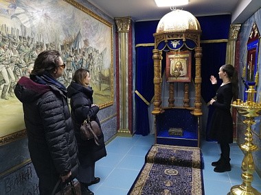 Воспитанницы «Отрады» организовали для гостя небольшой концерт – спели песню «Улетай» из оперы А.П. Бородина «Князь Игорь», и станцевали хоровод «Зимние узоры». Потом показали пансион с келиями и библиотекой, Православную гимназию с оборудованными классами и актовым залом. Показали свои костюмерные с аккуратными рядами платьев и туфель, где все подписано и разложено так, чтобы можно было легко и быстро найти все, что нужно. Показали духовно-просветительский центр «София» – с детскими творческими студиями, большим конференц-залом и интерактивным музеем «Малоярославец – город двух великих побед», созданным при финансовой поддержке Фонда президентских грантов.