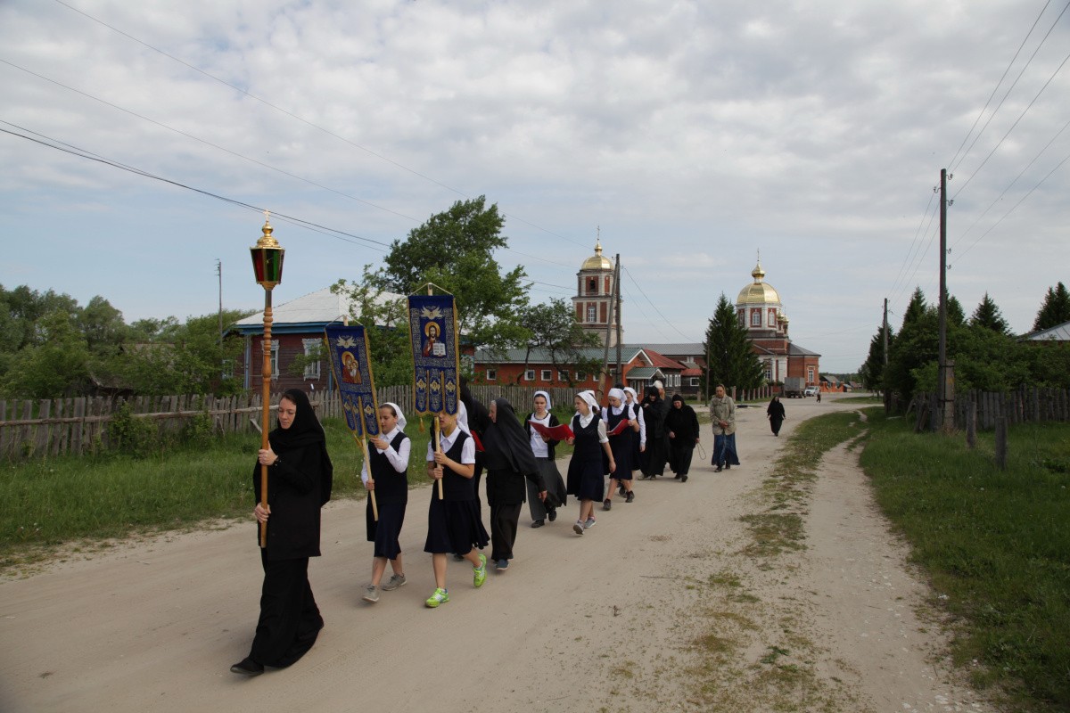 По окончании Божественной литургии клирики, насельницы монастыря, воспитанницы Службы помощи семье и детям и прихожане прошли с пением Пасхального канона от с. Шостья до деревни Анатольевки, где у поклонного креста был отслужен краткий молебен.