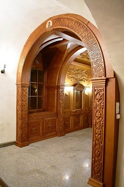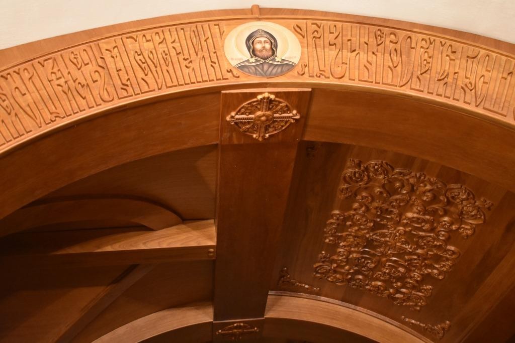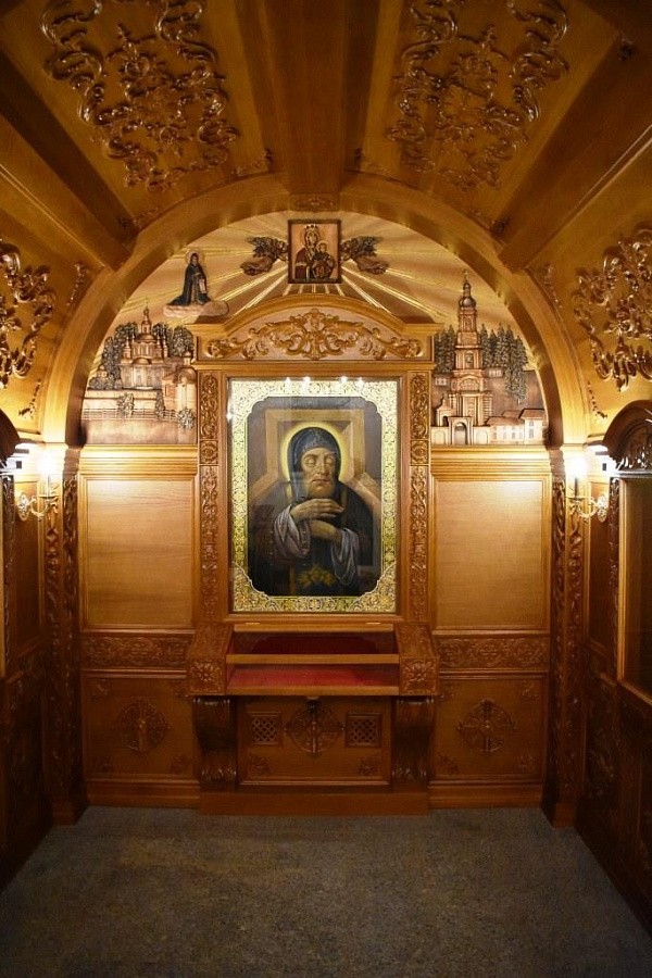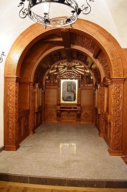 Представляет собой как бы пещеру, в которую будет установлена гробница со святыми мощами. Искусно вырезанный растительный орнамент украшает все стены и внутренние своды раки.