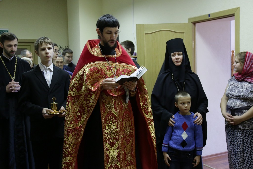 Чин освящения приюта был совершен клириком Новодевичьего монастыря иереем Евгением Мельниковым. «Надеемся, что тем, кто здесь будет жить, это будет во благо. Желаем вам, чтобы Промысл Божий управил вашу жизнь так, чтобы нахождение здесь стало маленьким шагом на пути спасения ваших душ и душ ваших детей»,- сказал отец Евгений.