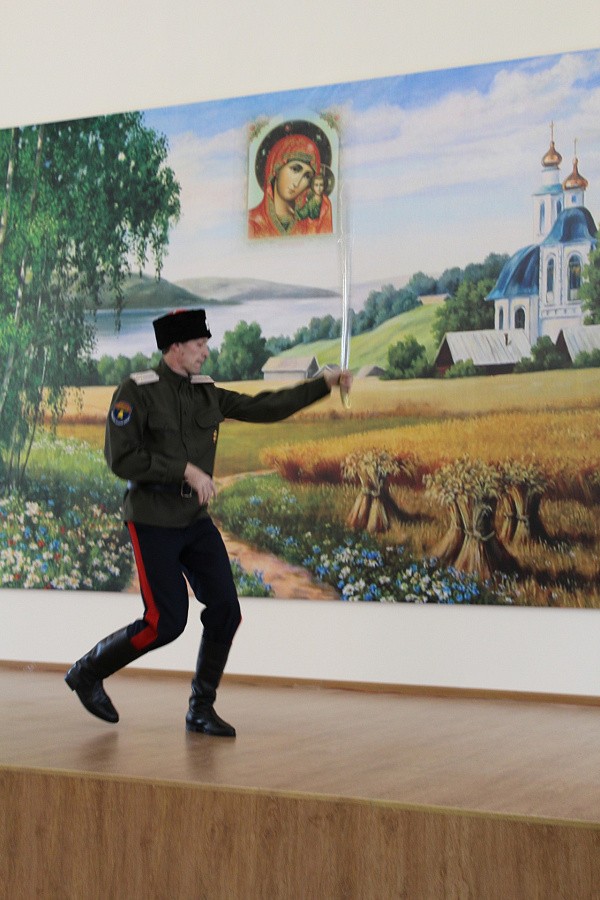 Концерт открыл сводный детский хор «Истоки» с исполнения тропаря Казанской иконе Божией Матери. Затем ребят на сцене сменили педагоги Учебного центра «Сызранский» НФ ДЕОЦ, представившие церковное песнопение «Заступница усердная». Участники показательных выступлений шашечной группы «Перначъ» – юноши и девушки Сызранского станичного казачьего общества – представили аудитории мастерское владение оружием.