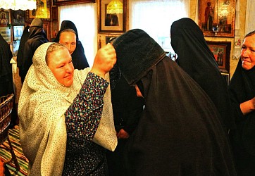 В иноческом постриге более тридцати дивеевских сестер получили имена бутовских новомучениц. Своих небесных покровительниц и всех, в Бутове пострадавших, дивеевские паломницы помянули на Божественной литургии, которую специально для них отслужил бутовский клирик иерей Артемий Цех в деревянном храме, построенном в 1995 году рядом с местом захоронений. Сестры пели и читали часы на литургии.