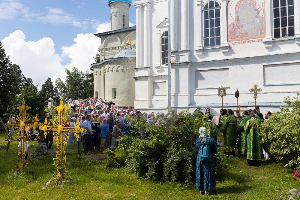 По окончании Литургии был совершен крестный ход вокруг собора, после чего пропето славление преподобному Авраамию.