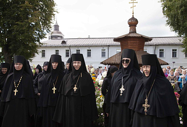 За богослужением молились настоятельница Толгского монастыря игумения Варвара (Третьяк) с сестрами обители, игумении монастырей, начинавших свою монашескую жизнь в Толгской обители.