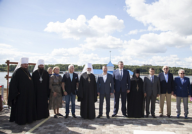 После открытия пристани митрополит Вадим освятил новый причал. Затем гости обители совершили небольшую обзорную экскурсию на первом теплоходе, причалившем к новому комплексу.