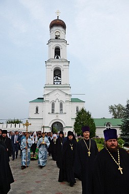 Духовный рост – это, в первую очередь, преодоление своих собственных проблем, разрешение своих сомнений, обуздание своих страстей, формирование молитвенного строя жизни. Для того и обители создаются, чтобы человек, уйдя в монастырь, мог создать внешние благоприятные условия для своего внутреннего духовного возрастания. Поэтому, благодаря вас за все то, что было сделано по обустройству обители, хотел бы выразить надежду, что по милости Божией, опираясь на общую молитву, на покровительство святых угодников, на предстательство Царицы Небесной, вы сможете сами работать над собой, не покладая рук, преодолевая трудности и возрастая духом. Дай Бог, чтобы Раифская обитель, как вы правильно сказали, не только своими замечательными постройками запечатлевалась в памяти людей, но и особым духовным состоянием иноков, которое всегда передается паломникам.