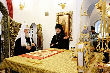 В завершение визита Святейший Патриарх Кирилл осмотрел Троицкий собор, святой источник и детский приют при обители.