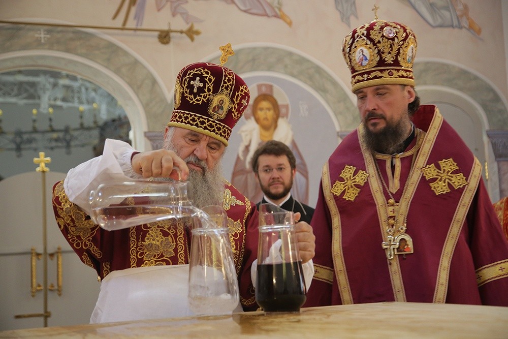 Его Святейшеству сослужили: митрополит Киевский и всея Украины Онуфрий; митрополит Крутицкий и Коломенский Ювеналий; митрополит Кишиневский и всея Молдовы Владимир; митрополит Астанайский и Казахстанский Александр, глава Митрополичьего округа в Республике Казахстан; митрополит Ташкентский и Узбекистанский Викентий, глава Среднеазиатского митрополичьего округа; митрополит Санкт-Петербургский и Ладожский Варсонофий, управляющий делами Московской Патриархии; митрополит Минский и Заславский Павел, Патриарший экзарх всея Беларуси; митрополит Волоколамский Иларион, председатель Отдела внешних церковных связей; митрополит Екатеринбургский и Верхотурский Кирилл; архиепископ Солнечногорский Сергий, руководитель Административного секретариата Московской Патриархии; епископ Каменский и Алапаевский Мефодий; епископ Нижнетагильский и Невьянский Евгений; епископ Серовский и Краснотурьинский Алексий; иеромонах Кирилл (Корытко), секретарь епархиального управления Екатеринбургской епархии; игумен Моисей (Пилатс), настоятель мужского монастыря Новомучеников и исповедников Церкви Русской; насельники монастыря Новомучеников и исповедников Церкви Русской в священном сане, духовенство Екатеринбургской митрополии.