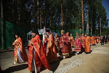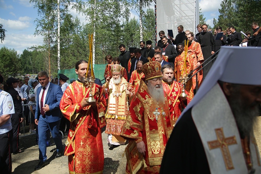 По окончании богослужения состоялось шествие с мощами преподобномученицы Великой княгини Елисаветы к бывшей Нижне-Селимской шахте, куда в ночь на 18 июля 1918 года были сброшены живыми Великая княгиня Елисавета Феодоровна Романова, инокиня Варвара (Яковлева) и князья династии Романовых. Ковчег с мощами был установлен у шахты.
