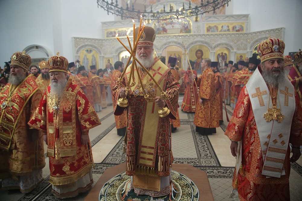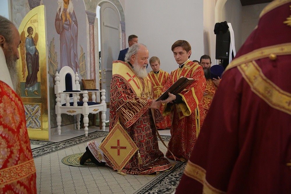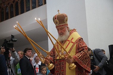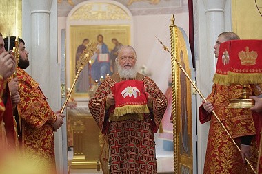 После сугубой ектении Предстоятель Русской Православной Церкви вознес молитву о мире на Украине.