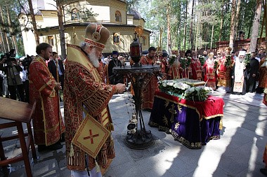 В заупокойную ектению было включено прошение: «Еще молимся о упокоении душ усопших рабов Божиих, на месте сем убиенных, великого князя Сергея Михайловича, князей императорской крови Игоря, Иоанна и Константина Константиновичей, князя Владимира, раба Божия Феодора и всех, в годину лютых гонений от безбожников убиенных; в лагерях, в темницах и в узах от ран, болезней и глада скончавшихся; в горьких работах умученных и всех в подвиге исповедническом подвизавшихся и о еже проститися им всякому прегрешению, вольному же и невольному».