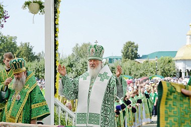 После праздничной монастырской трапезы, организованной в трапезном храме Святого Александра Невского, Святейший Патриарх Московский и всея Руси Кирилл посетил Канавку Божией Матери.