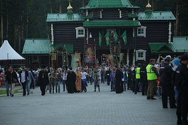 Святейший Патриарх Кирилл прошел весь маршрут крестного хода. Утром 17 июля крестный ход во главе с Предстоятелем Русской Православной Церкви прибыл к монастырю святых Царственных страстотерпцев на Ганиной Яме. В обители перед поклонным крестом у шахты № 7 Святейший Владыка совершил молебен святым Царственным страстотерпцам.