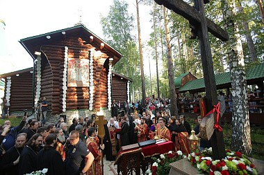 Крестный ход на Ганину Яму и молебен в монастыре святых Царственных страстотерпцев стали последними мероприятиями в программе Первосвятительского визита Святейшего Патриарха Кирилла в Екатеринбургскую митрополию, приуроченного к 100-летию расстрела царской семьи.