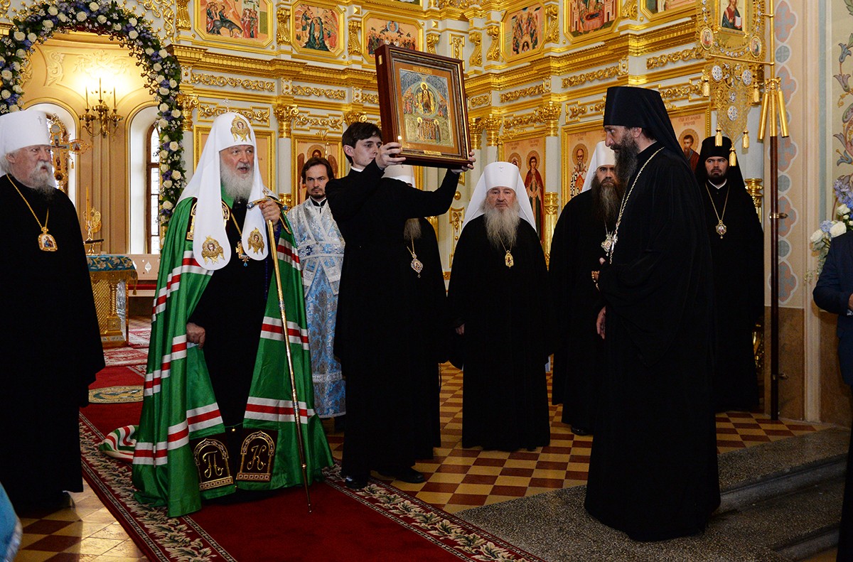 В дар обители Святейший Патриарх Кирилл передал икону Собора Пресвятой Богородицы. Верующим раздали иконки Покрова Пресвятой Богородицы с Патриаршим благословением.