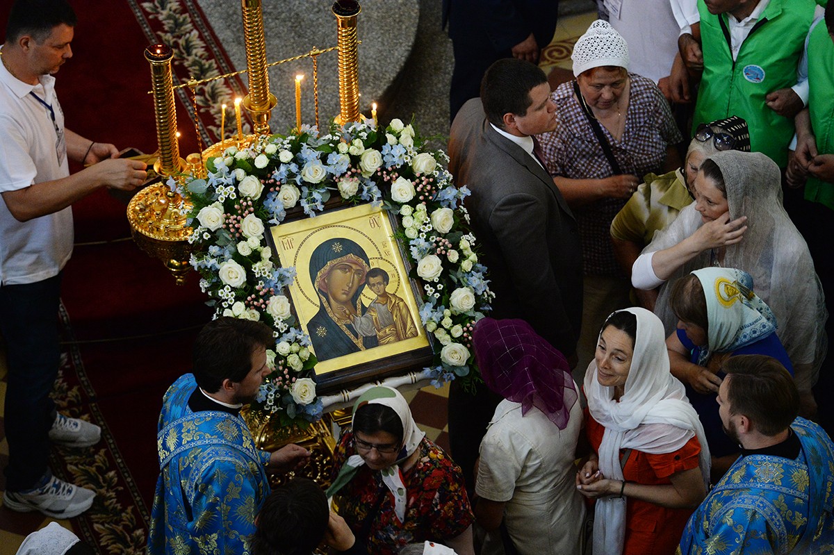 20 июля 2016 года, в канун праздника явления иконы Пресвятой Богородицы во граде Казани (1579), Святейший Патриарх Московский и всея Руси Кирилл совершил утреню всенощного бдения в соборе Иконы Божией Матери «Всех скорбящих Радость» Свияжского мужского монастыря Успения Пресвятой Богородицы Татарстанской митрополии.