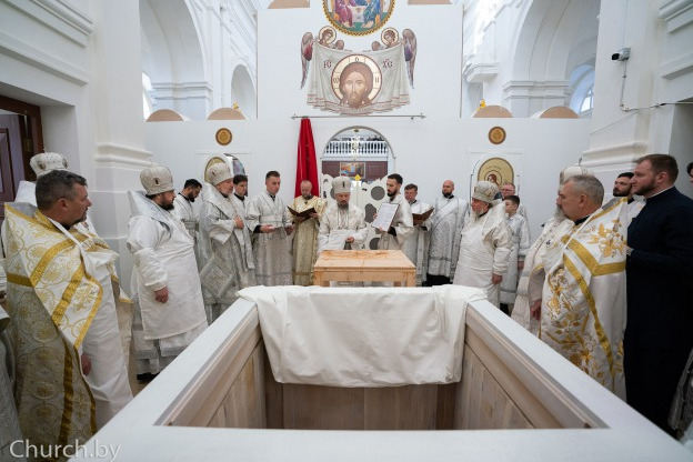 Богослужебные песнопения исполнил архиерейский хор под управлением Виталия Соболевского. Трансляция велась на YouTube-канале Белорусской Православной Церкви.