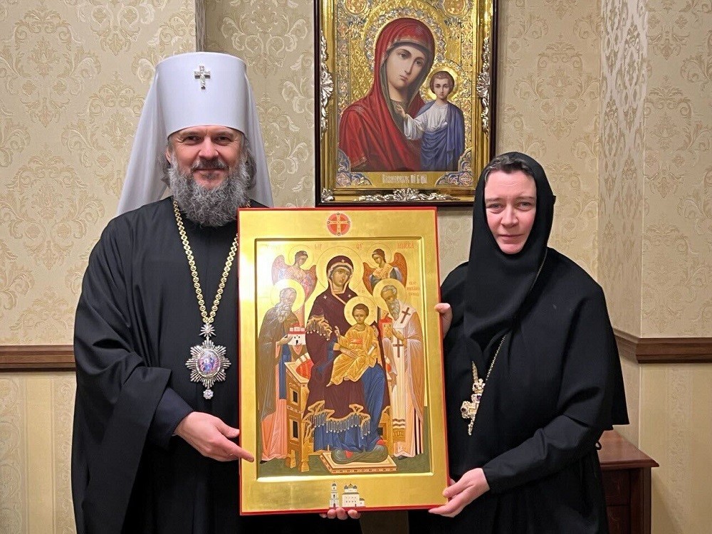 21 ноября настоятельница Воскресенского Новодевичьего монастыря Санкт-Петербурга игумения София (Силина) передала правящему архиерею Тверской епархии митрополиту Тверскому и Кашинскому Амвросию образ Пресвятой Богородицы «Экономисса» с пожеланиями скорейшего восстановления Спасо-Преображенского кафедрального собора Твери.
