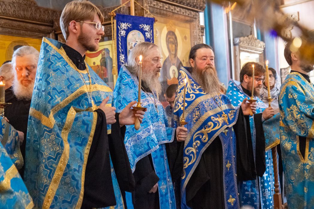 Архипастырю сослужили: благочинный храмов Центрального округа протоиерей Василий Иванов, секретарь Орловской епархии иерей Димитрий Никулин, исполняющий обязанности наместника Свято-Успенского монастыря игумен Тихон (Гладких), руководитель информационно-аналитического отдела Орловской епархии иерей Алексей Лаушкин и братия монастыря в священном сане.